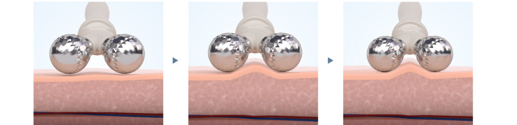 Y handpiece uses a 1 kHz Medium frequency to stimulate and improve blood circulation. 360-degree rotating kneading ball design provides muscle massage, activating lymphatic circulation, skin tightening, and lifting effects.