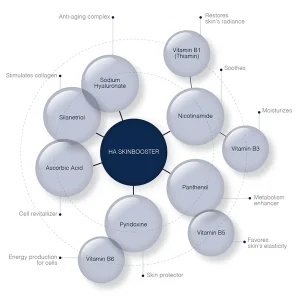 Sodium hyaluronate, silanetriol, ascorbic acid, vitamin B6, pyridoxine, vitamin B5, panthenol, vitamin B3, nicotinamide, vitamin B1.