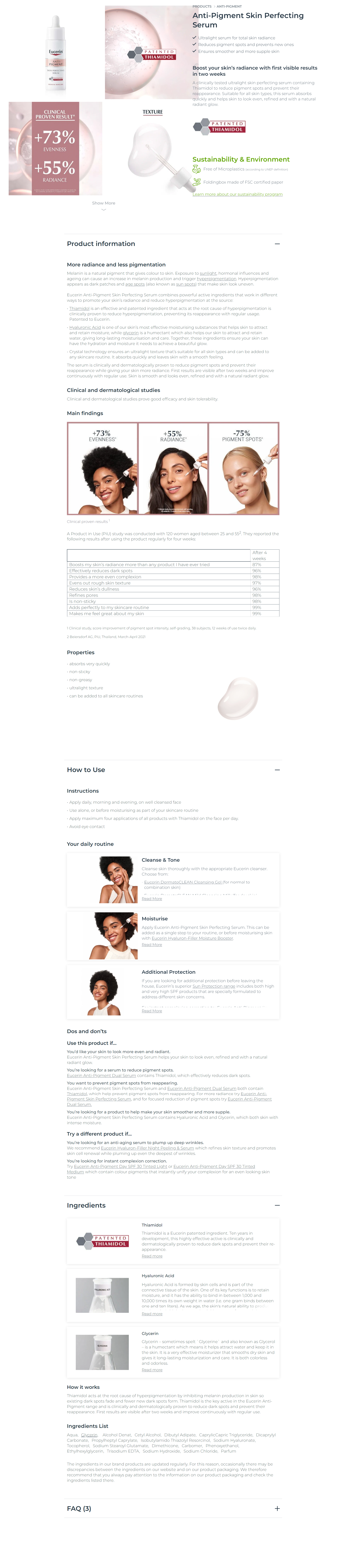 Anti-Pigment Skin Perfecting Serum promotes skin radiance and reduces pigment spots and prevents new ones.With an ultralight texture, this serum is suitable for all skin types and can be added to any skincare routine.
